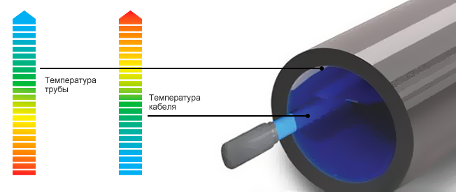 • Кабель самостоятельно регулирует мощность тепловыделения в зависимости от температуры обогреваемой поверхности.