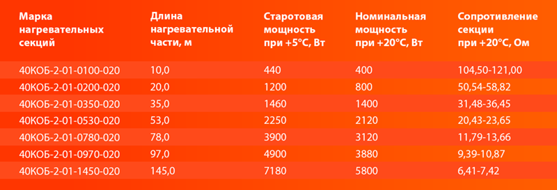 Секция нагревательная кабельная 40КОБ-2-02-0200-020-Lite