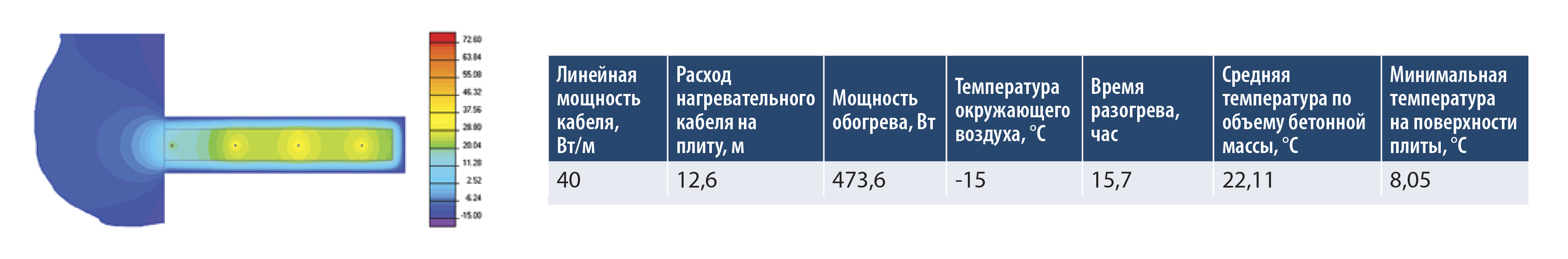 - Равномерный прогрев кабеля до 60 °С, без кипения и выгорания проводов.