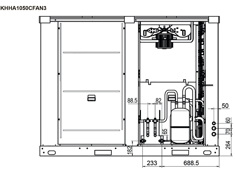 ККБ работает совместно с приточной вентиляционной установкой в качестве охладителя поступающего воздуха в системах вентиляции помещений. Также он совместим с различными видами внутренних блоков и с центральными кондиционерами. Оснащен встроенным блоком автоматики, который управляет работой компрессора и вентилятора, контролирует состояние защитных устройств, предотвращает частый запуск и выключение компрессора.