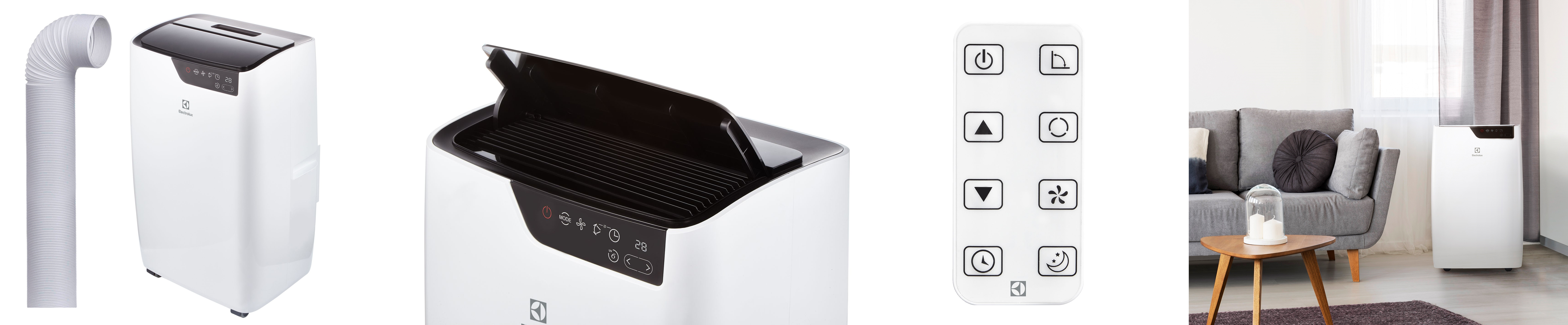 Главное преимущество мобильных кондиционеров — они не требуют сложного монтажа, в отличие от сплит-систем. Достаточно организовать отвод горячего воздуха в окно или систему вентиляции с помощью воздуховода (идет в комплекте). Так же его можно перемещать из одной комнаты в другую, перевозить, убирать на на хранение в холодный период.