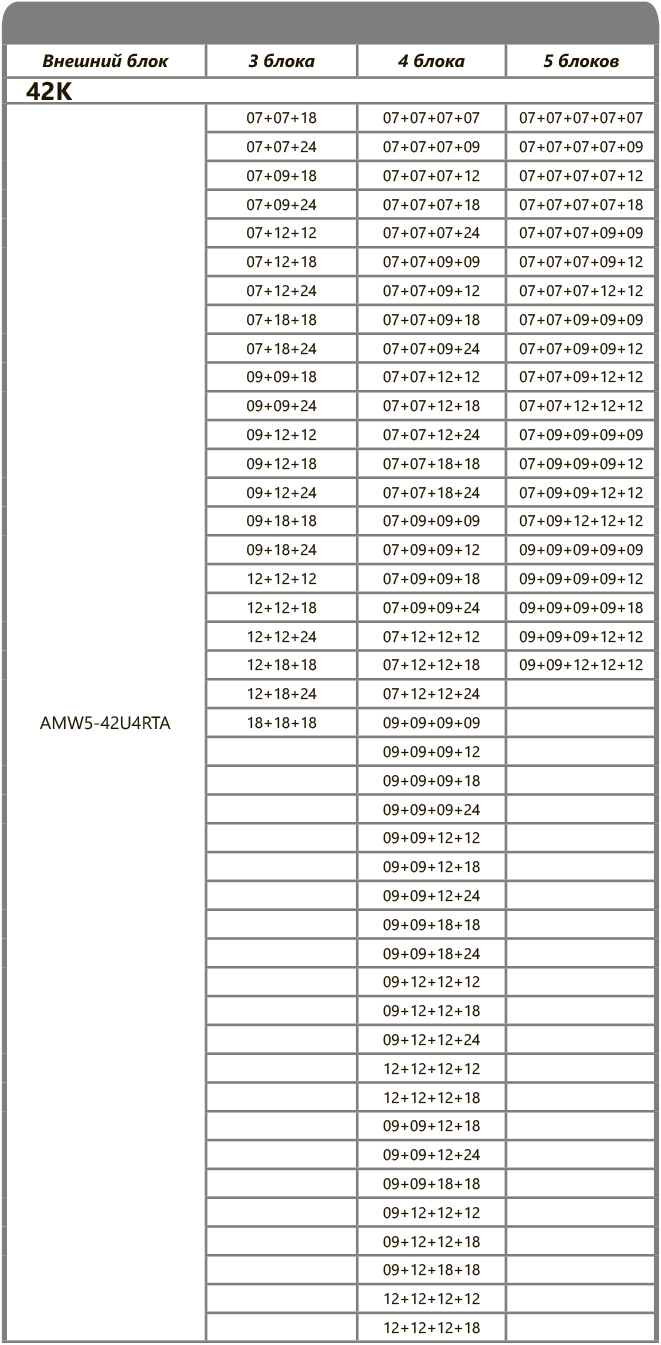 Рассчитан на подключение 5 внутренних блоков. Общая площадь охлаждения до 125 кв.м, комбинации внутренних блоков подбираются индивидуально. Внутренние блоки можно подобрать здесь.