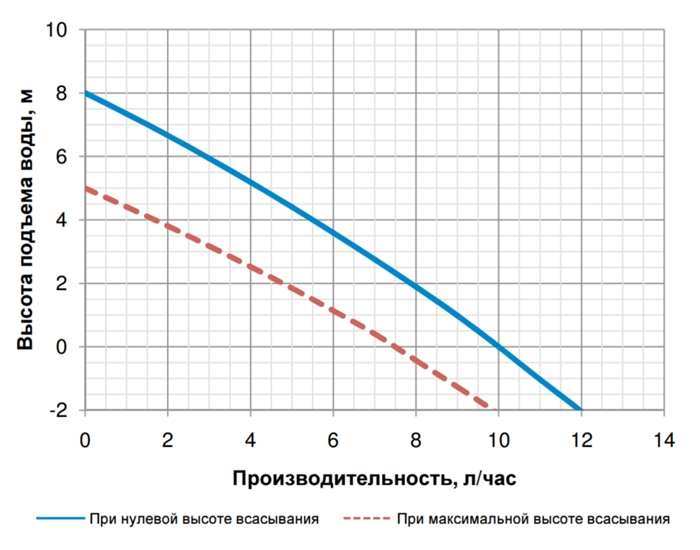 Зависимость производительности насоса от высоты подъема воды: