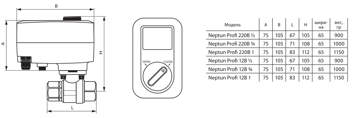 Шаровой кран с электроприводом Neptun PROFI 12В 1/2
