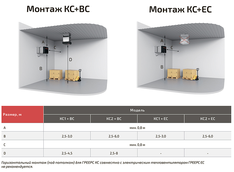 Для камеры смешения с водяным тепловентилятором ГРЕЕРС ВС применяется как настенный, так и подпотолочный монтаж. Крепление к стене производится с помощью монтажной консоли (консоль приобретается отдельно).