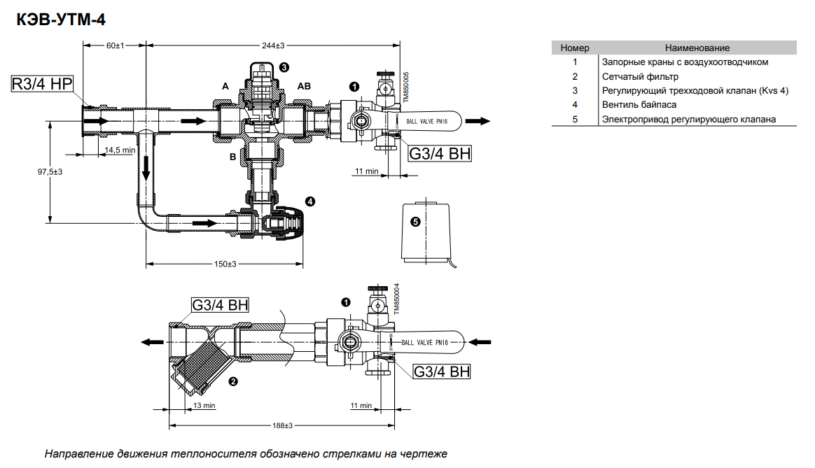 • При полностью закрытом клапане, регулирующий байпас обеспечивает постоянный проход воды, во избежание замерзания теплоносителя.