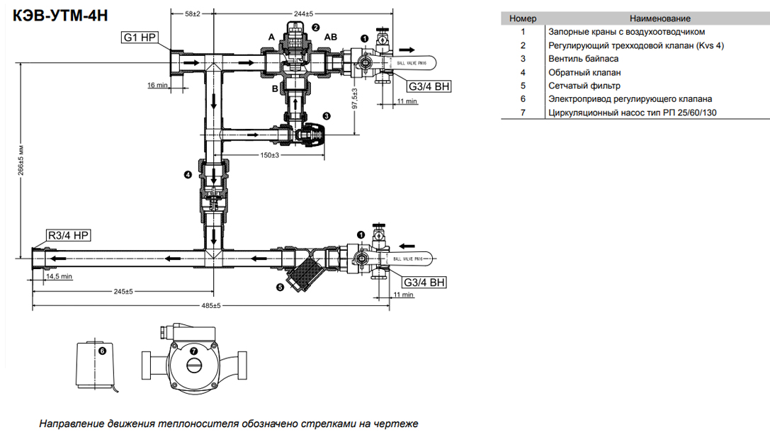 • При полностью закрытом клапане, регулирующий байпас обеспечивает постоянный проход воды, во избежание замерзания теплоносителя.