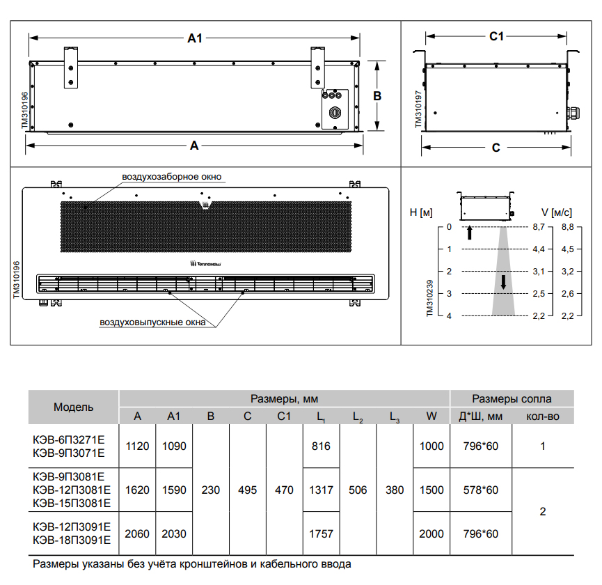 Тепловая завеса Тепломаш КЭВ-18П3091E серия 300 Потолочная