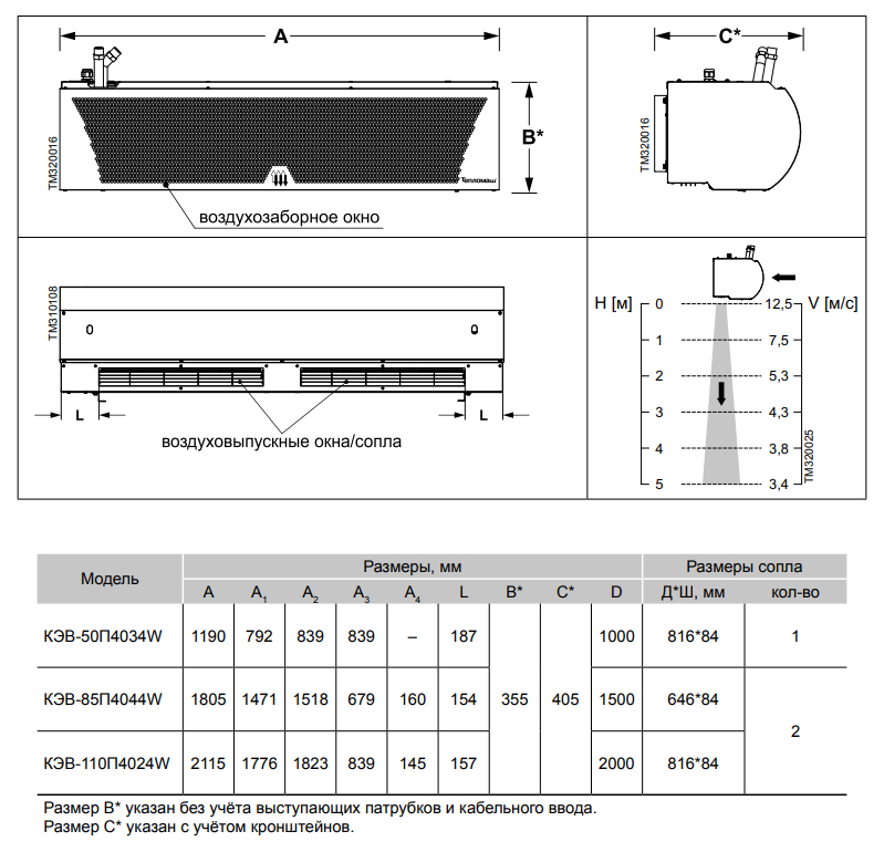 Условная тепловая мощность водяной завесы указанна в кВт.ч при температуре подаваемой воды +95°С / её охлаждением до +70°С / температура окружающей среды +15°С. При изменение любого из показателей мощность будет отличаться от заявленной. (См. технические характеристики модели)